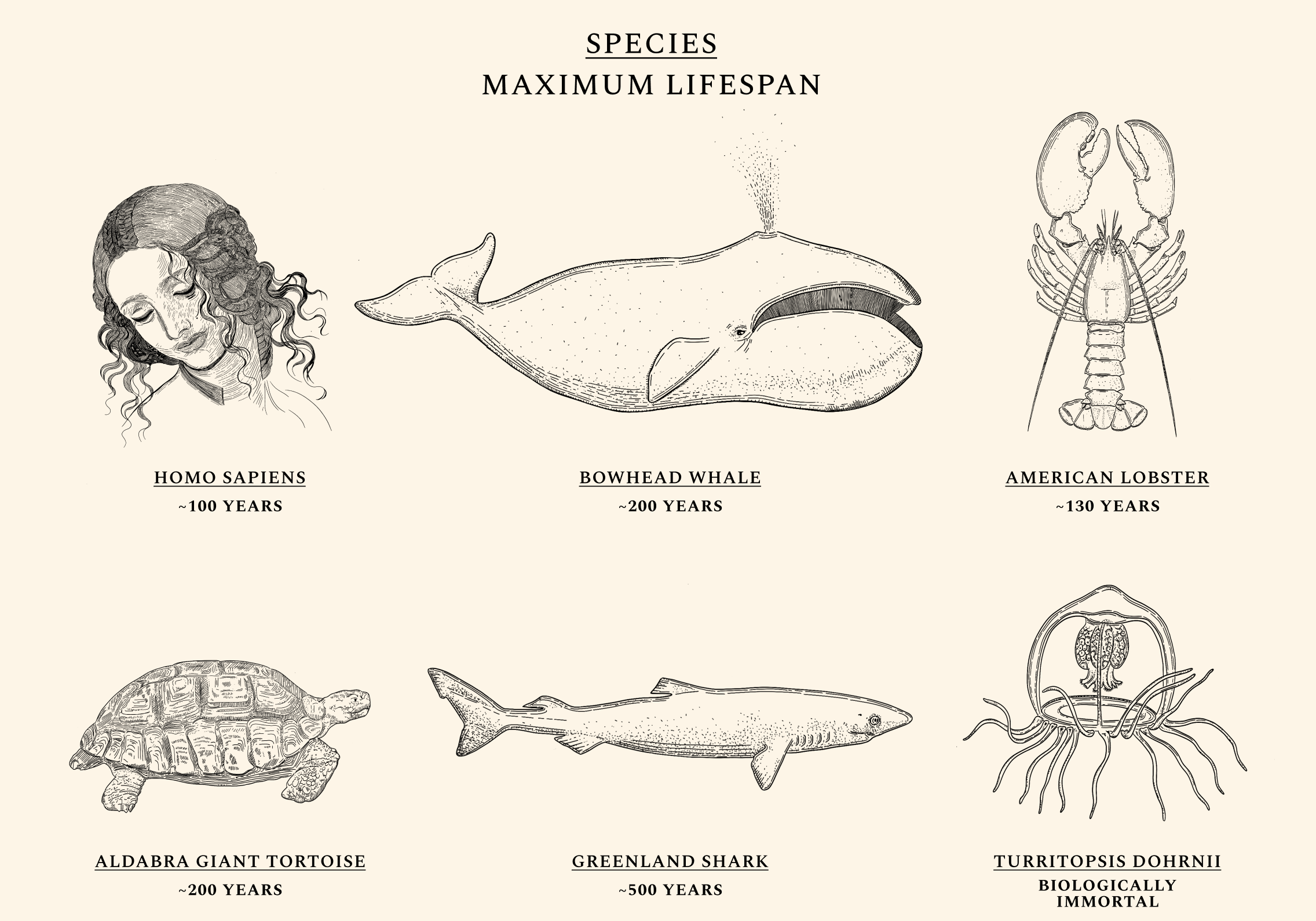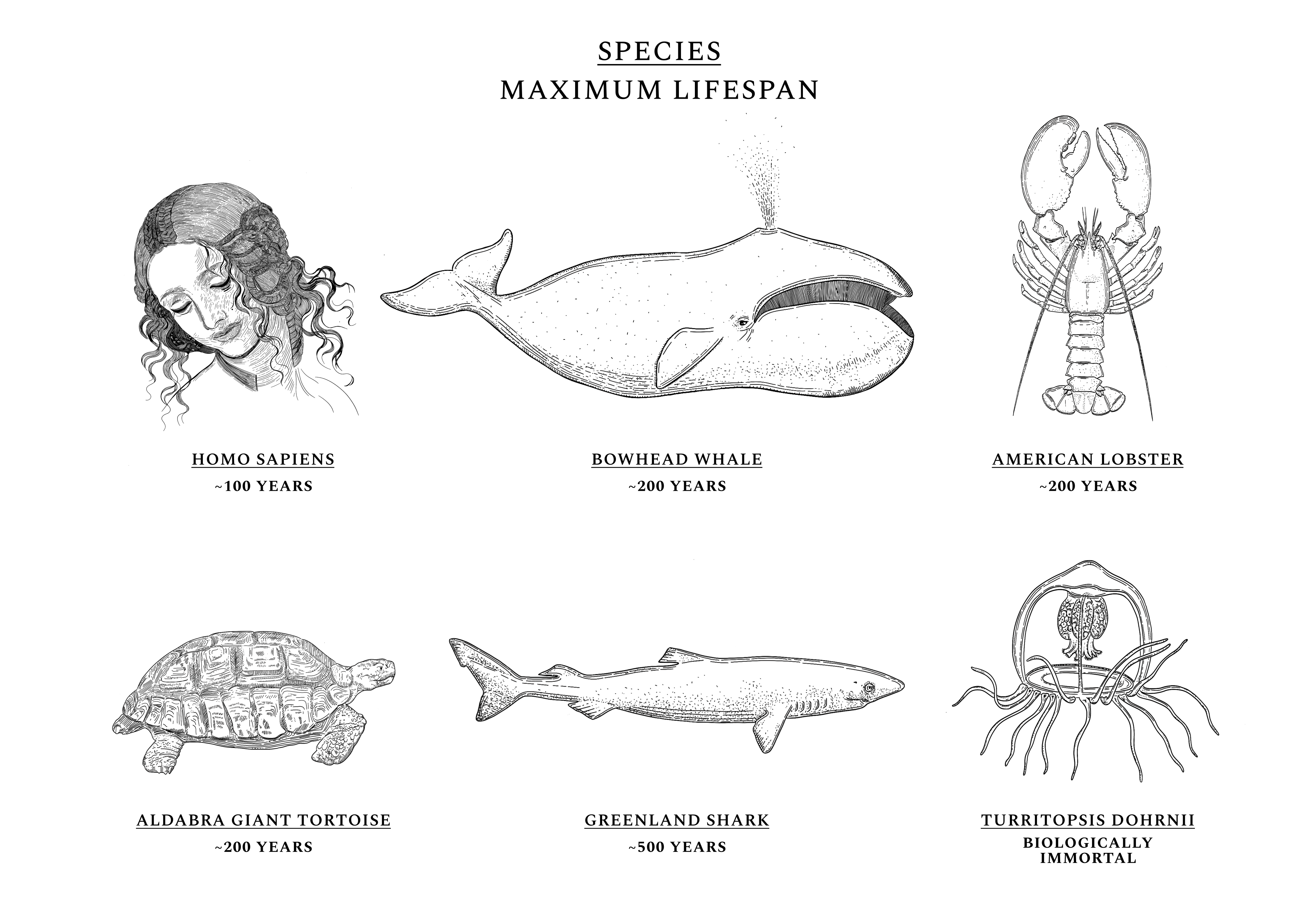 Some species, like the Aldabra giant tortoise, are more likely to die the moment they are born than they are at age 90. Others, like the jellyfish Turritopsis Dohrnii, are often called "biologically immortal," which means that without extrinsic mortality rates (e.g. predators or infectious diseases) they would not necessarily die. Mammals like the bowhead whale and fish like Greenland sharks routinely live for centuries without developing chronic illnesses like cancers or Alzheimer’s, while the health of naked-mole rats appears not to decline at all over time. Humans exhibit a similar ability for health maintenance until our twenties. Throughout our lives, our cells constantly undergo mutations and alterations. But as our natural capacity for repair begins to wane, damage begins to irreversibly accumulate. The same type of molecular damage that might have been easily tended to at a young age begins to build up during our thirties and forties. The diseases of aging — like cancers, heart diseases, dementias, and diabetes — most often appear after decades of misrepairs.